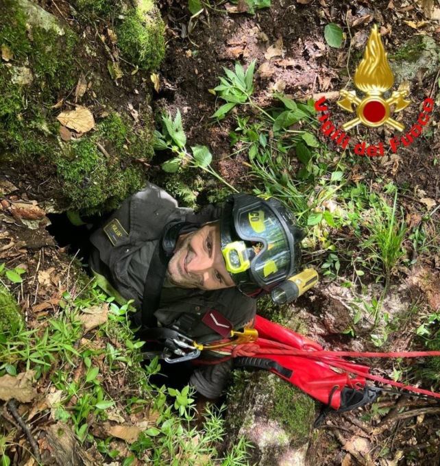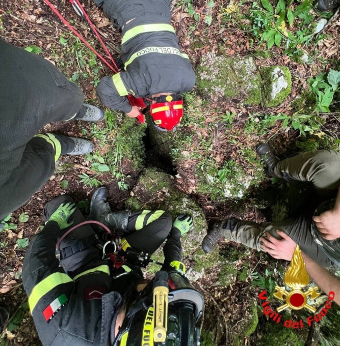 Il cane Tosca recuperato a sei metri di profondità dai Vigili del Fuoco
