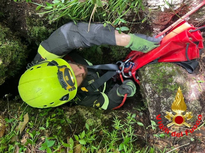 Ad intervenire due squadre supportate dagli operatori SAF (Speleo Alpino Fluviale) del Comando Provinciale dei Vigili del Fuoco di Brescia. L’animale  era caduto in una diaclasi, cavità ipogea censita con la sigla 698LO. Gli operatori si sono quindi calati all’interno della fessura nonostante le ridotte dimensione, sono comunque riusciti a raggiungere il cane a sei metri di profondità, lo hanno imbragato e riportato in superficie per poi essere riconsegnato al padrone. Un po’ spaventato ma in buone condizioni.