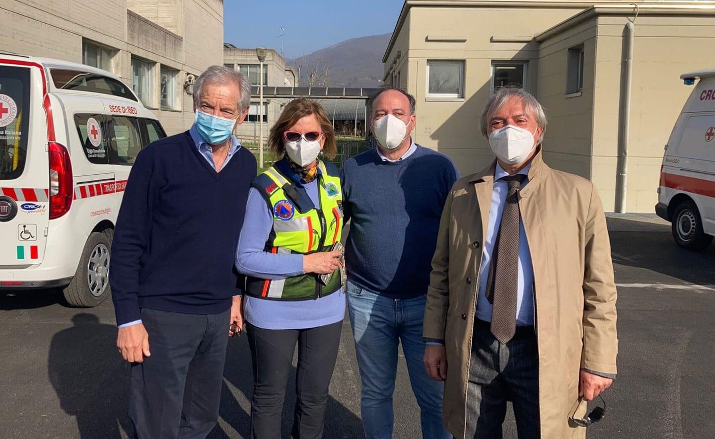 Poco prima, in occasione della visita al centro vaccinale di Iseo, Bertolaso ha incontrato Gloria Rolfi (direttore Comunità Montana del Sebino Bresciano), Jean Pierre Ramponi (direttore Sanitario Asst Franciacorta ) e il sindaco Marco Ghitti ringraziandoli “per lo straordinario lavoro svolto, per la responsabilità, la reattività e la grande concretezza: il punto vaccinale di Iseo un modello da imitare per sconfiggere la pandemia”