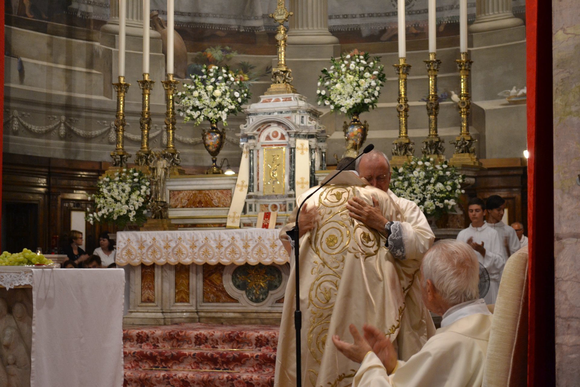 “Quando l’ultimo dei servi racconta l’ennesima tragedia capitata, la morte di tutti i suoi figli, Giobbe dice: il Signore ha dato, il Signore ha tolto, sia benedetto il nome del Signore – ha esordito il parroco richiamandosi al Libro di Giobbe – Non so con quale fatica Giobbe riuscì a pronunciare quelle parole. Fatica e amarezza ho io nel cuore nel ripetere le sue parole guardando alla scelta del vescovo. Il Signore mi ha dato te, don Michele, dieci anni fa: ho condiviso con te gioie, fatiche e speranze del ministero sacerdotale; in te ho visto rispecchiato l’entusiasmo dei miei primi anni di sacerdozio. Col tuo carattere sempre gioviale e sereno, la tua passione educativa per i ragazzi e i giovani ci hai aiutato a formulare il progetto educativo per risolvere l’annoso e spinoso problema dell’oratorio, che forse sta per arrivare al traguardo. Col tuo trasferimento perdo un valido collaboratore, un amico fedele, un consigliere speciale, un figlio amato. Al Signore il mio grazie per avermi dato te, e con fatica lo benedico per averti donato ad altri. Buon cammino, la porta di casa mia sarà sempre aperta”.
