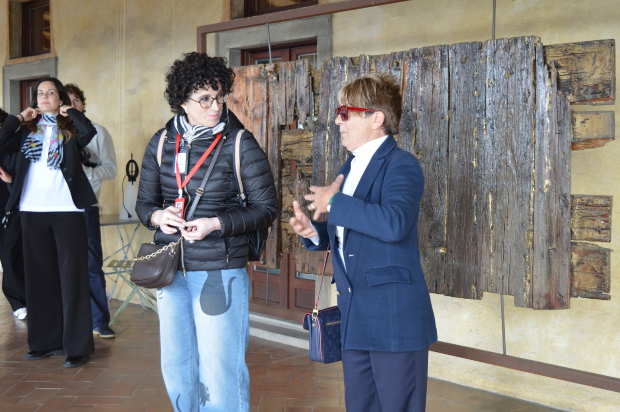 L’azienda agricola Iside di Sulzano, ad esempio, ha portato un esempio di agricoltura biologica rigenerativa, che rispetta la terra e guarda anche al risvolto sociale, con progetti in natura per i bambini. Interessante anche il corner di Altrove che indaga nuovi modi di abitare in provincia, ma l’evento è stato anche un’occasione per scoprire, oltre alla storia del Convento, anche l’operazione di recupero accurato effettuata dalla famiglia Moretti per realizzare delle meravigliose suite, nelle quali i mobili originali si affiancano ad arredi moderni. “Le camere non sono molte ma gli ospiti sperimentano la stessa armonia con la natura che i frati respiravano nel Convento”, ha illustrato Lucia Zanotti di Iseo Guide. Coinvolgente poi la testimonianza dell’artista erbuschese Tina Moretti, che oltre ad allestire una mostra ha spiegato le opere collocate sul loggiato superiore, realizzate recuperando i portoni del Convento. “E’ difficile superare l’ostacolo, per raggiungere l’assoluto – ha spiegato l’artista – Tutti abbiamo storie di dolore, ma se riusciamo a mettere delle bende dorate, possiamo sopravvivere nella speranza”. Insomma, stimoli diversi ma tutti ugualmente inebrianti hanno scandito una giornata speciale, in cui il Convento sembrava davvero una grande casa delle meraviglie, capace di accogliere tutti.