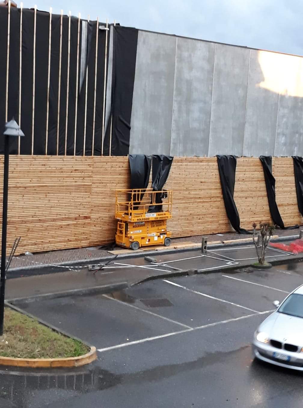 Danni anche alla nuova struttura della scuola, dove il vento ha rovesciato le transenne e le fasce nere posizionate sulla struttura.