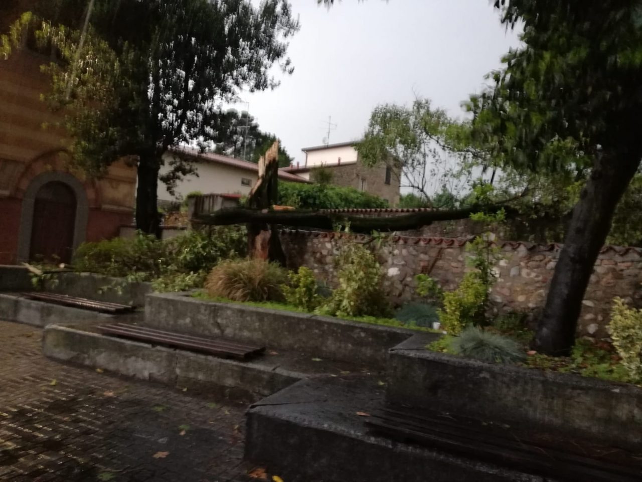 A Urago nella zona della chiesetta dei Morti in Campo sono caduti degli alberi, provocando grossi danni.