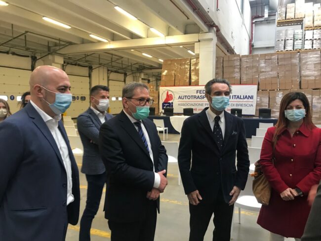 Il presidente di Regione Lombardia Attilio Fontana ha concluso a Montichiari questa sera il suo viaggio odierno in terra bresciana incontrando gli autotrasportatori rappresentati da Sergio Piardi presidente della Federazione Autotrasportatori Italiani, associazione provinciale di Brescia. Piardi ha accolto il governatore lombardo nella sua azienda, la MTL, ospitando anche numerosi imprenditori del settore, autorità civili e politici. Ad accogliere il presidente Fontana anche il sindaco di Montichiari Marco Togni accompagnato dalla Giunta al completo e dal consigliere regionale e comunale Claudia Carzeri. Sergio Piardi, rivolgendosi al presidente Fontana, si è fatto portavoce di alcuni temi fondamentali per cui la sua categoria ha bisogno di sostegno e investimenti: formazione e lavoro, digitalizzazione, sostenibilità ambientale e infrastrutture.