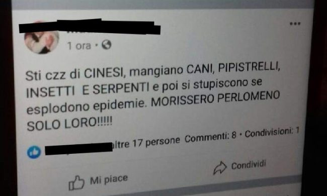 A dimostrazione che chi supporta quest’ultima tesi non abbia proprio tutti i torti, c’è un post che Esti ha prima pubblicato e poi cancellato (rendendosi forse conto di aver esagerato un’altra volta) sul suo profilo Facebook e riguardante l’epidemia di Coronavirus in corso. “Sti c***o di cinesi mangiano cani, pipistrelli, insetti e serpenti – si legge nello screenshot del post fatto da un utente e segnalatoci – e poi si stupiscono se esplodono epidemie. Morissero perlomeno solo loro!”.