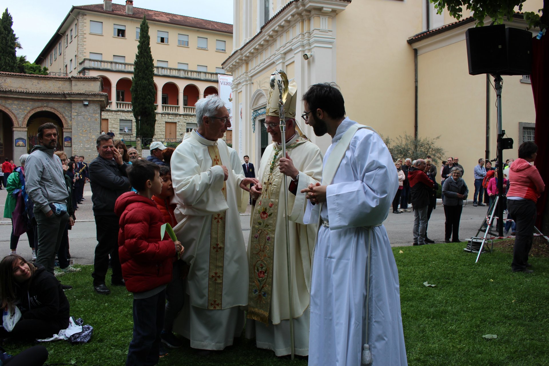 Poco dopo le 16 è stata celebrata la Messa dal vescovo Pierantonio Tremolada; per accogliere tutti i fedeli, la celebrazione si è svolta all’aperto, nel parco vicino al santuario.