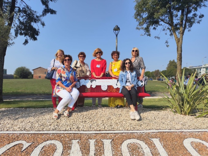 L'iconica panchina, che richiama quella inaugurata ad Orzinuovi, è il frutto del genio creativo di un'altra donna e artista, Silvia Trappa