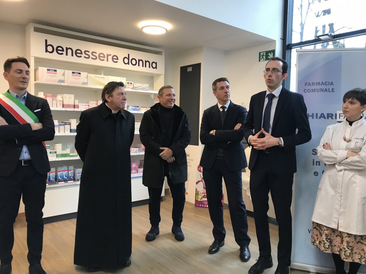 Ha aperto le sue porte a giugno, ma solo oggi è stata ufficialmente inaugurata. La Chiari Farma, farmacia comunale gestita dalla municipalizzata Chiari Servizi, ha visto il taglio del nastro questa mattina al termine degli appuntamenti organizzati in occasione della Settimana della salute. Al termine dei discorsi di rito, del presidente Marco Salogni, dell’assessore Domenico Codoni, della direttrice Eva Scalvini e dell’architetto Vezzoli che si è occupato del progetto della struttura, non è mancata la benedizione di monsignor Gian Maria Fattorini. Al sindaco Massimo Vizzardi invece è toccata la conclusione dell’evento.