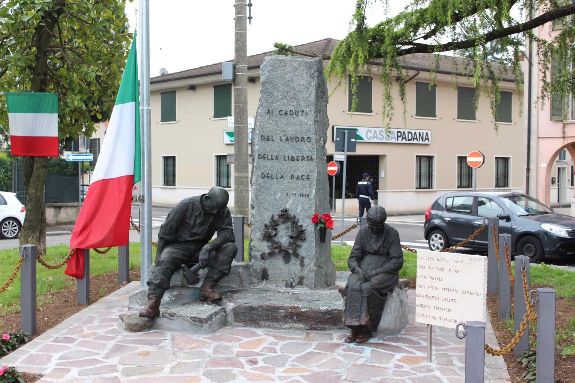 Inaugurato il Monumento ai Caduti del lavoro a Bagnolo Mella che è stato trasferito in piazza Resistenza.