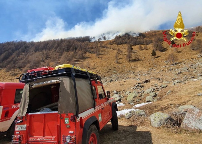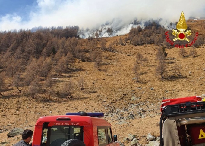 Il fronte del fuoco si sta dirigendo verso alcune baite, sul posto stanno operando tre elicotteri del servizio antincendio regionale e un Canadair della flotta aerea nazionale, presenti i vigili del fuoco con due autobotti e un fuoristrada dotato di modulo antincendio, congiuntamente i volontari A.I.B.