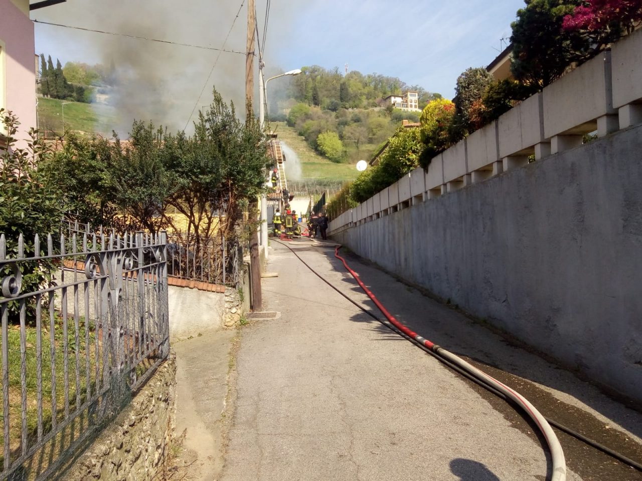 Attorno alle 10.30 è stato segnalato un incendio a Rovato, vicino al confine con Coccaglio. I Vigili del fuoco si sono recati sul posto e uno di loro è rimasto ferito per la caduta del tetto.