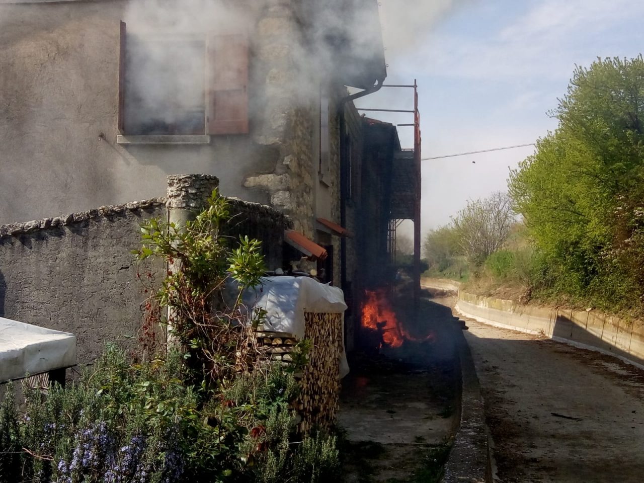 Sono momenti concitati. L’incendio ha coinvolto il tetto e poi i piani superiori di tre case, e le fiamme sono anche scesi a piano terra.