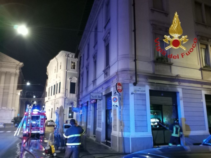 Incendio all’alba di oggi (mercoledì 3 gennaio 2024) a Brescia: in fiamme un bar.