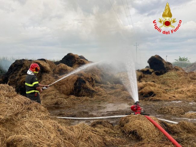 Alle ore 14 di oggi 17 agosto, 5 squadre del Comando Provinciale dei Vigili del fuoco di Brescia sono intervenute a Montichiari nella frazione di Bredazzane per spegnere l’incendio di circa 200 rotoballe stipate in un campo di una azienda agricola.