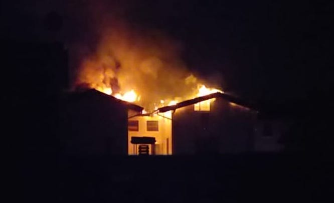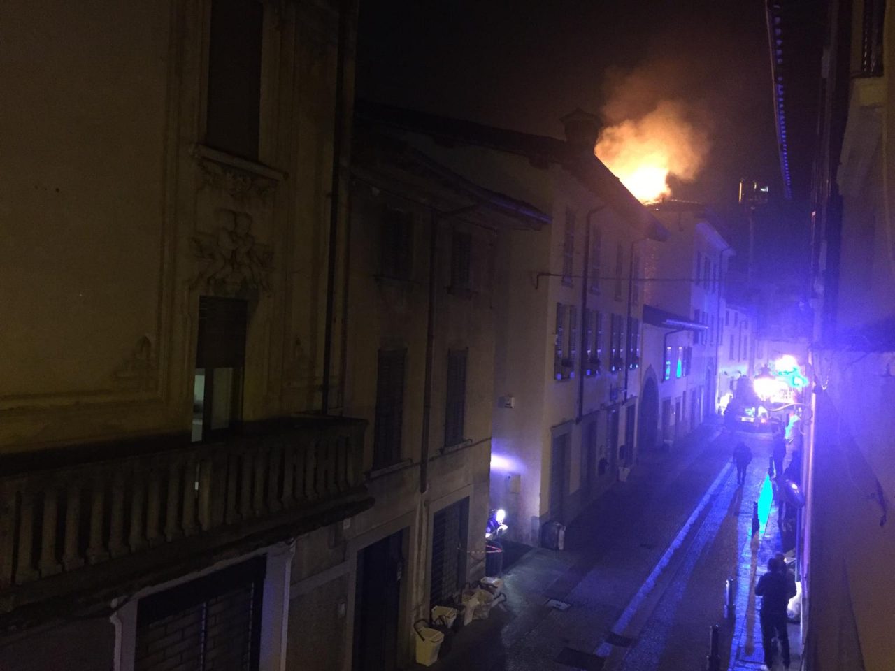 Incendio in via Marengo, a Chiari. Le fiamme sono divampate intorno alle 23.30.