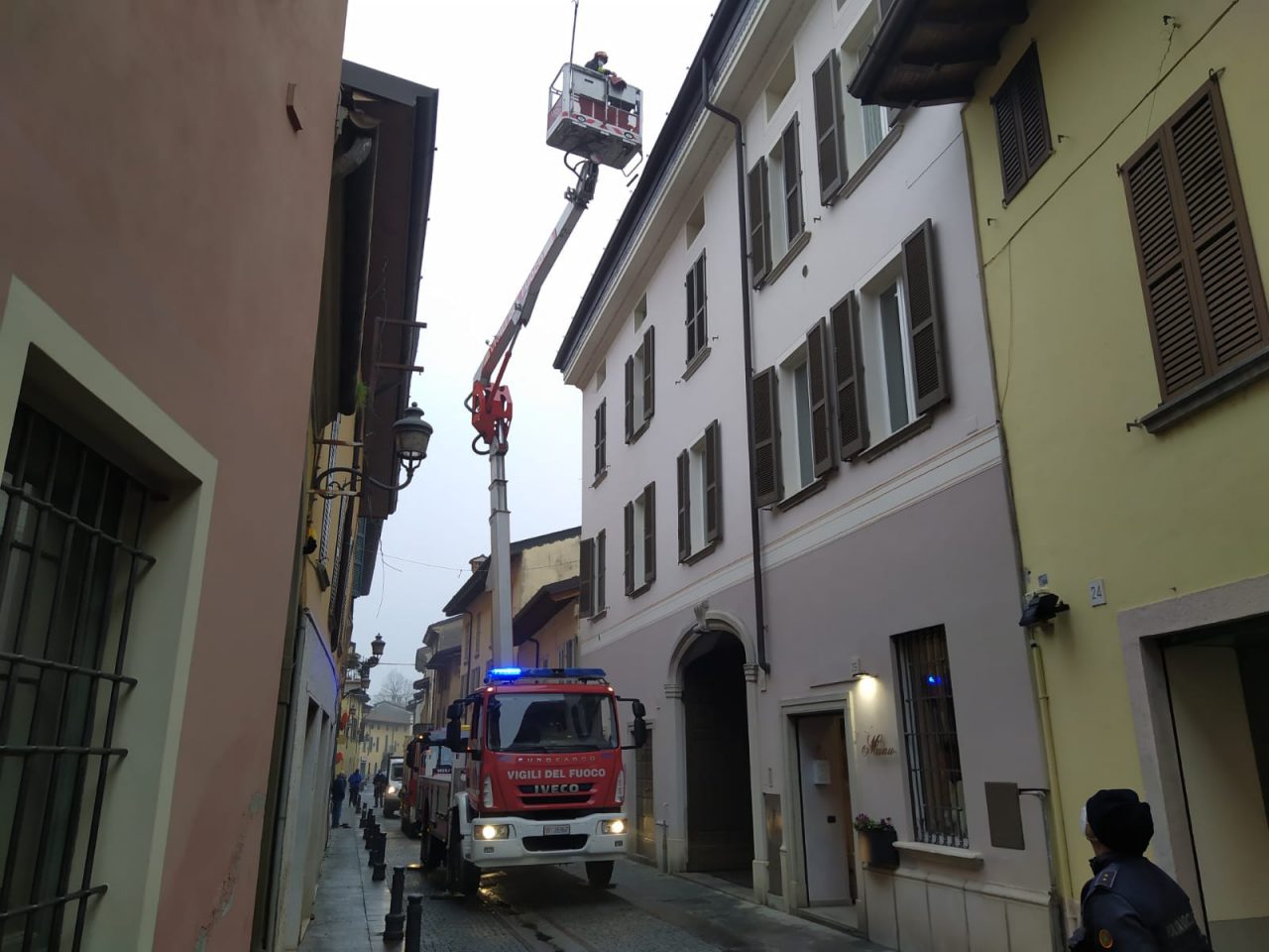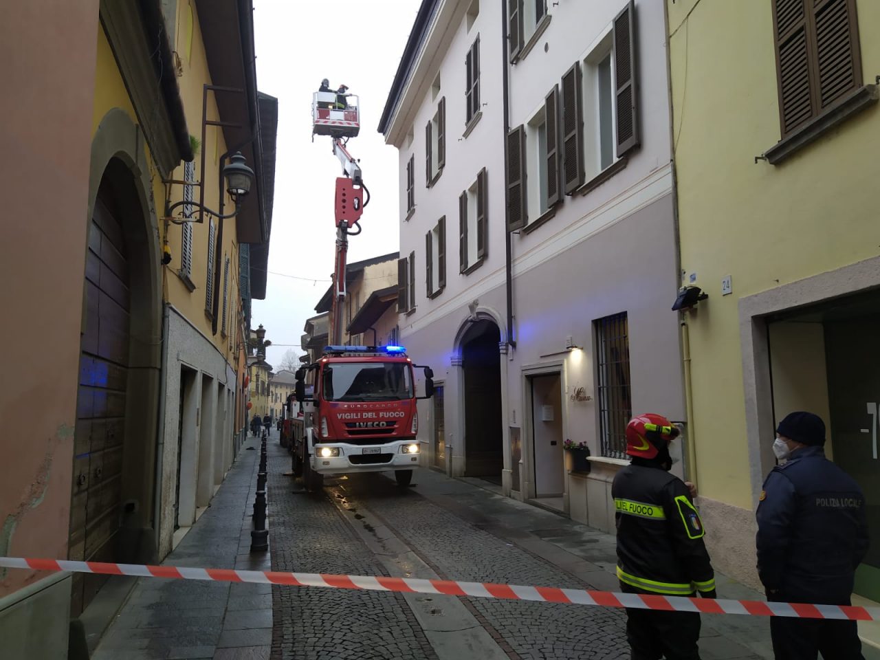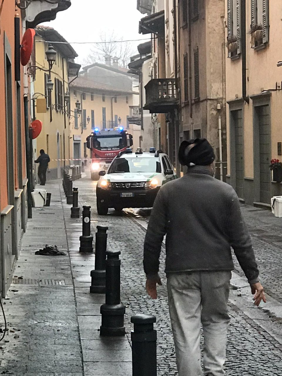 La strada è chiusa e ci sono i mezzi dei Vigili del fuoco.
