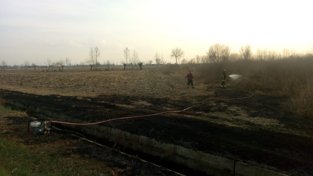 Incendio nei campi a Manerbio