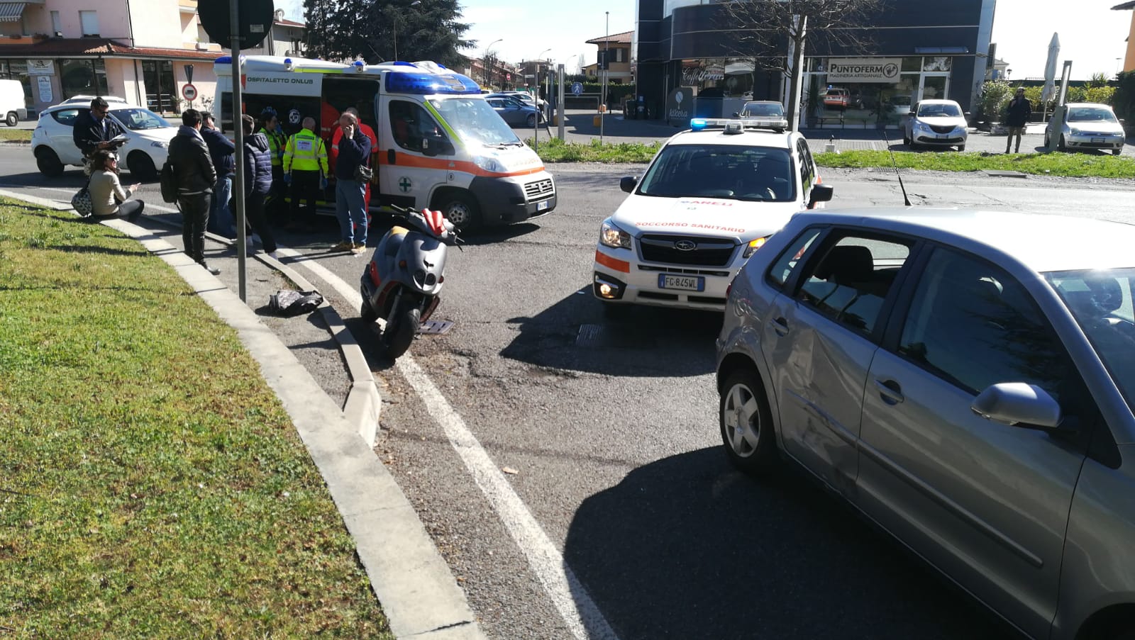 Incidente fra auto e moto in via 25 aprile alle 13.50.