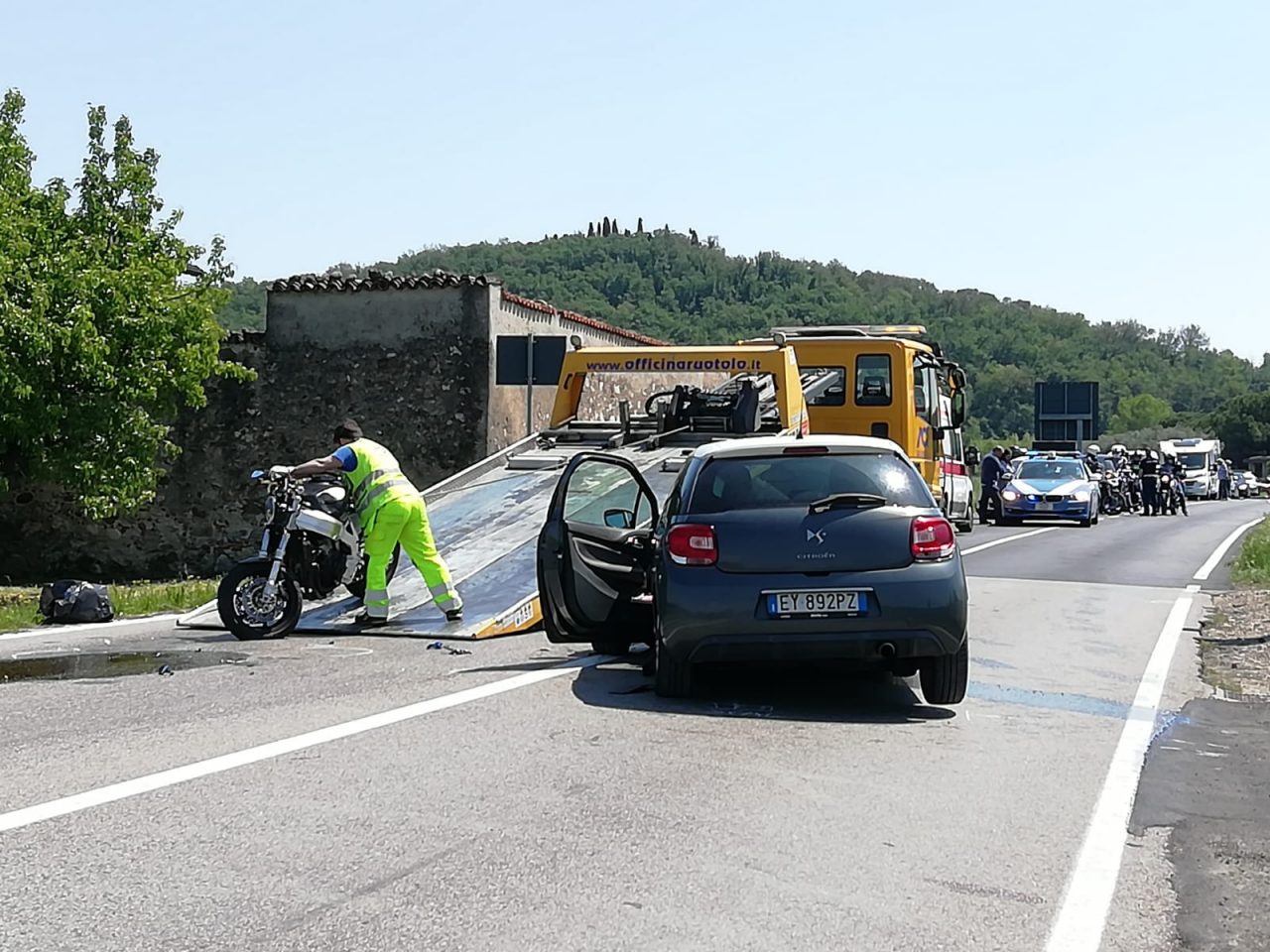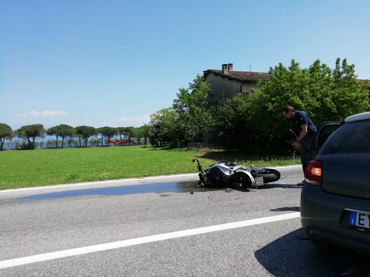 Incidente sulla sp572 a Lonato: paura per un biker FOTO