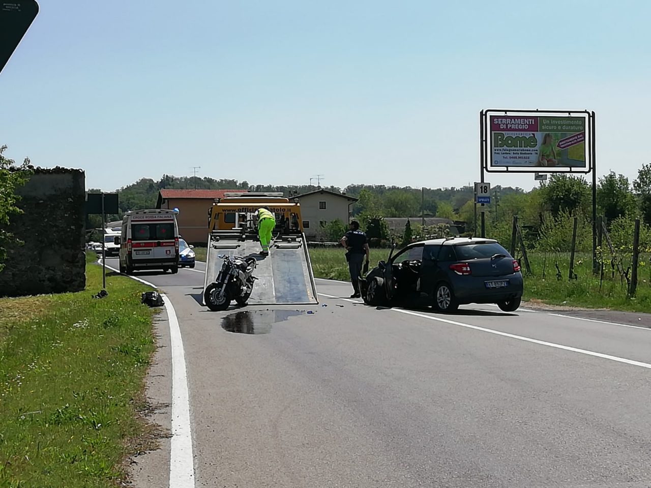 Dalle prime ricostruzioni è emerso che l’auto guidata da una coppia di Roncadelle che era a Desenzano per il Primo Maggio era ferma in una piazzola di sosta sulla strada che da Padenghe va a Desenzano. Si stavano piano piano immettendo sulla carreggiata quando una moto, che arrivava dalla stessa direzione e viaggiava a velocità sostenuta, ha urtato tutta la fiancata del veicolo. Il motociclista (classe 1963 di Rivoltella) è stato sbalzato per 10 metri. Era cosciente ma ha riportato diverse fratture, è stato portato in elicottero alla Poliambulanza. La coppia è rimasta illesa, ma lo spavento è stato grande.