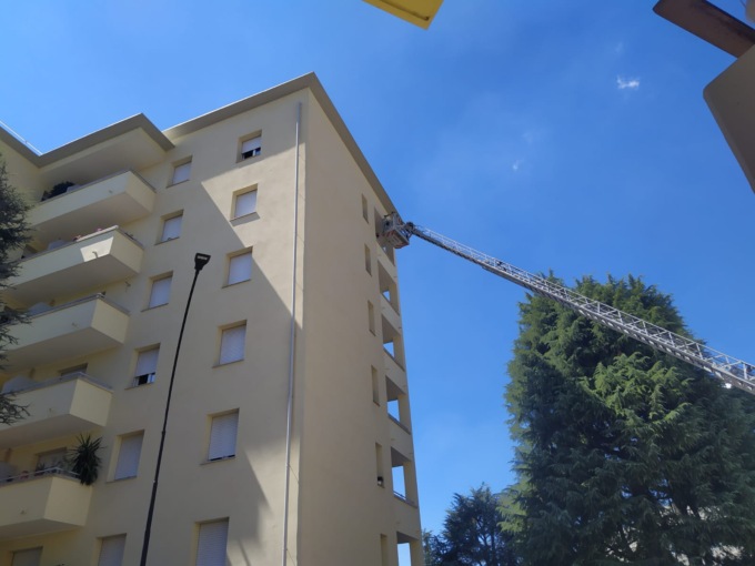 Intervento dei Vigili del Fuoco, autoscala per soccorrere persona all’interno della sua abitazione