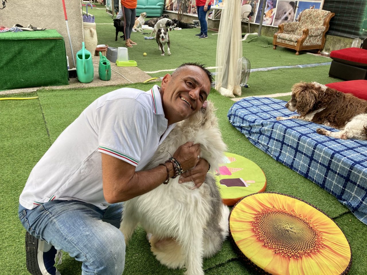 Luciano Alpino insieme a uno dei cani ospitati nel rifugio.