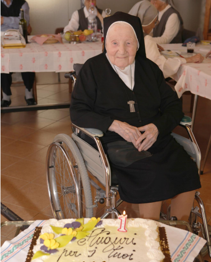 Il compleanno ricorre oggi, domenica 26 agosto. Suor Maria Fedele conquista il titolo di donna più longeva della Provincia di Brescia. Suor Maria Fedele è nata nel 1908 a Prà di Genova con il nome di Salata Iolanda, e ha frequentato le suore Orsoline di San Carlo. Qui nasce la sua vocazione, della quale farà una ragione di vita. Dopo i primi anni di formazione a Milano, la religiosa è arrivata a Desenzano nel 1951: da allora vive nella comunità delle Suore Orsoline in via Santa Maria, circondata dall’affetto delle sue Sorelle.
