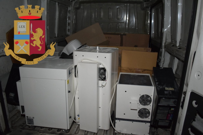 L’individuazione del mezzo si inscrive in attività investigative più articolate, volte al contrasto di delitti contro il patrimonio e protrattesi da diverse settimane, che hanno già consentito alla Questura di rinvenire e restituire ai legittimi proprietari una decina di veicoli rubati, tra cui anche una Ferrari furtivamente sottratta in provincia. Gli investigatori si appostavano riservatamente nei pressi del mezzo, quando sopraggiungeva un’auto a bordo della quale viaggiavano quattro uomini, di origini dell’Est Europa, in parte già ritenuti coinvolti nel furto di materiale tecnico di ingente valore, segnatamente di tipo odontotecnico, recuperato pochi giorni prima, quando era stato caricato su un mezzo destinato all’estero.