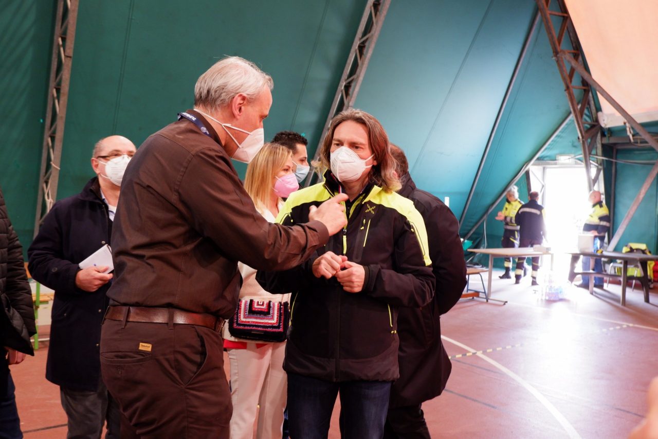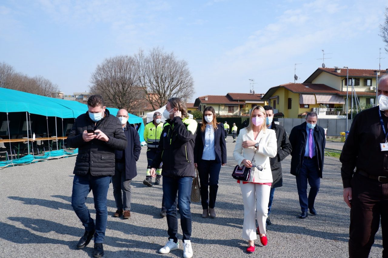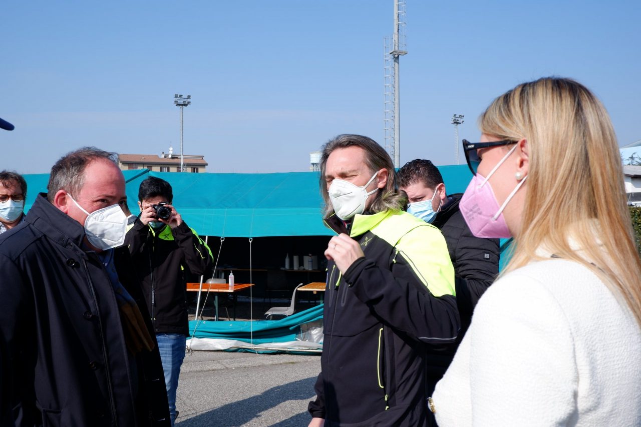 Giornata di tour l’assessore regionale al Territorio e Protezione civile Pietro Foroni. Nel pomeriggio, infatti, ha fatto visita all’hub gestito dall’Asst Franciacorta al geodetico del Centro Sportivo di via Santissima Trinità.