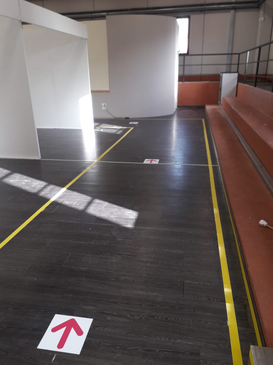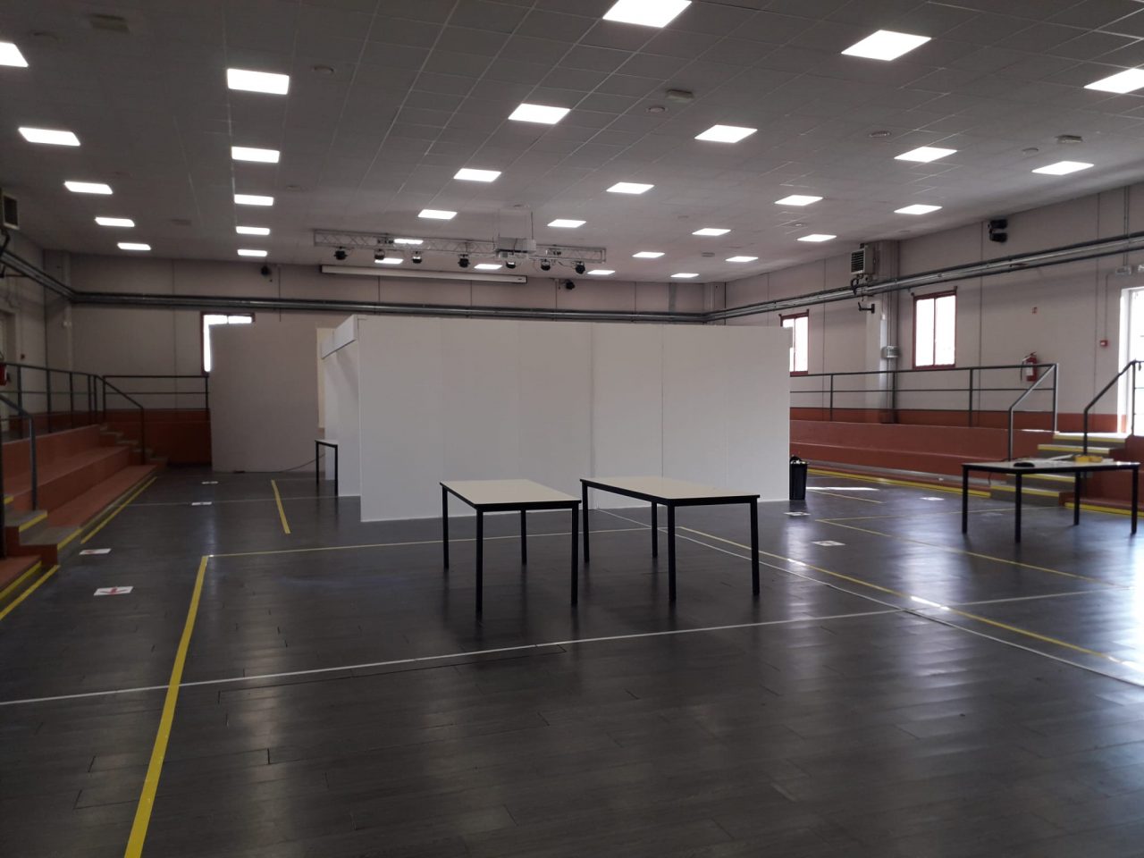 In particolare, gli interventi di adeguamento hanno riguardato il tratteggio della segnaletica orizzonatale, la collocazione segnaletica di sicurezza (oltre alla nuova segnaletica stradale con le indicazioni per raggiungere il centro vaccinale), la separazione ed individuazione delle varie zone con tramezzature mobili, l’adeguamento impianto di riscaldamento esistente con il posizionamento di split caldo/freddo nella zona accoglienza/ingresso, la distribuzione di energia elettrica al servizio dei box vaccinali e della zona diluizione/preparazione farmaci e il collegamento internet e distribuzione della connettività di rete tramite dispositivi wireless, idonei e con garanzia di continuità operativa.