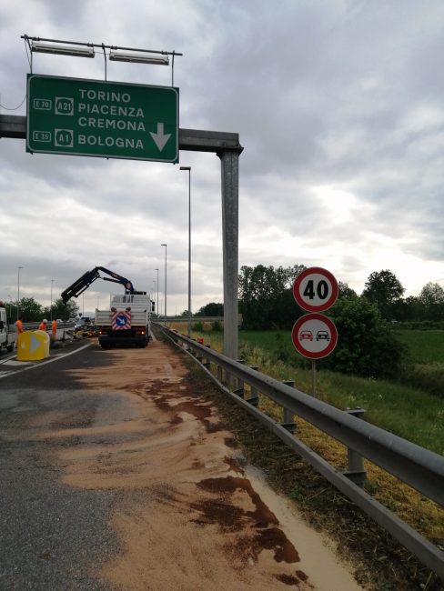 Nessuno per fortuna è rimasto ferito. Per mettere in sicurezza l’area sono intervenuti i Vigili del Fuoco di Verolanuova. Sono ancora in corso le operazioni per pulire la strada dal carburante: nel frattempo l’uscita in direzione Torino, Piacenza, Cremona e Bologna è stata chiusa al traffico.