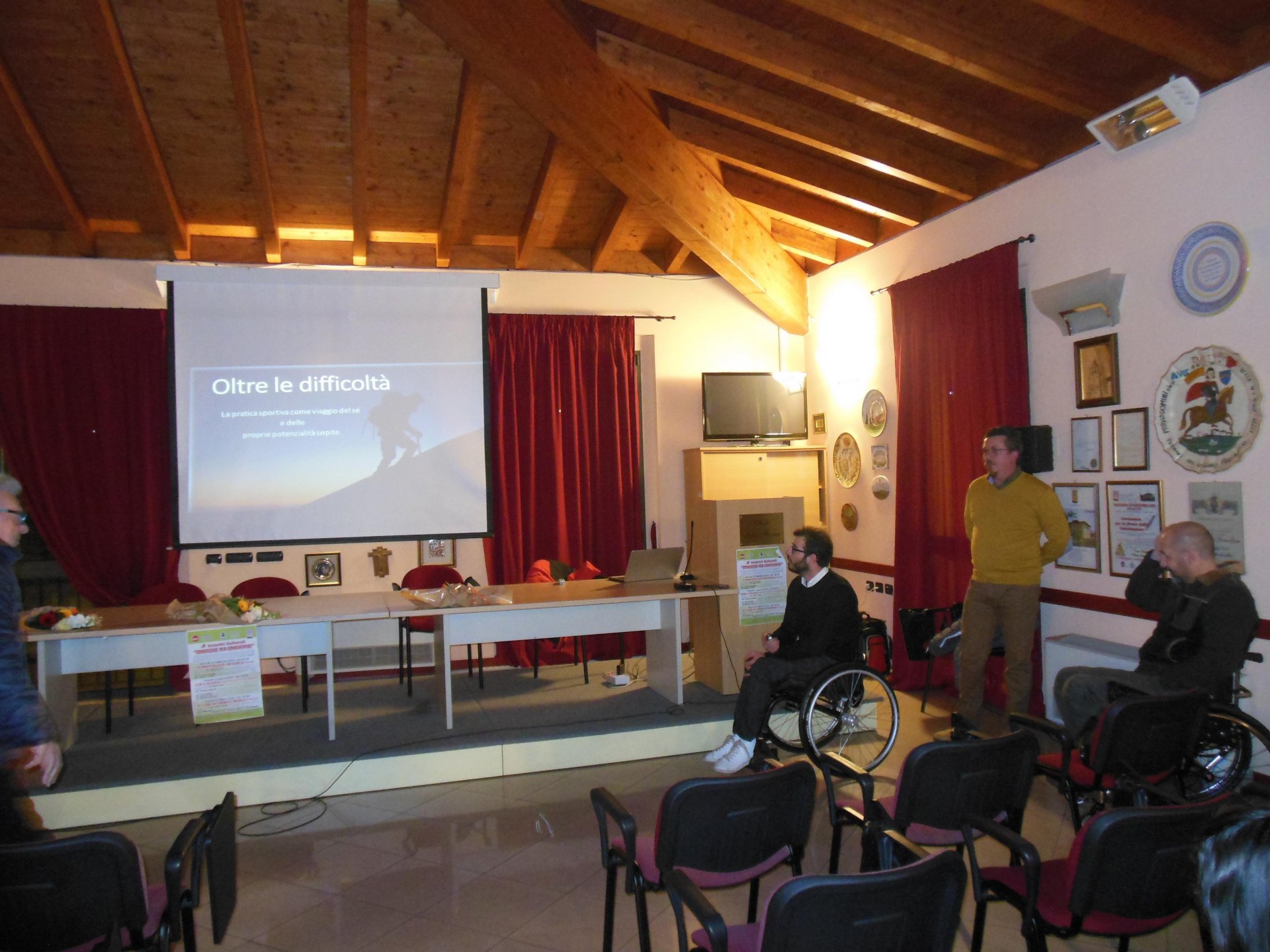 Presenti alla serata Matteo Duranti, atleta paralimpico di Handbike, Luca Savardi, presidente dell’Associazione “Icaro”, Antonio Lovo, osteopata, e Wolmer Bono, Assessore allo Sport del Comune di Coccaglio. Questi hanno discusso sia dei molti problemi che delle grandi opportunità incontrate dai diversamente abili nel mondo dello sport.