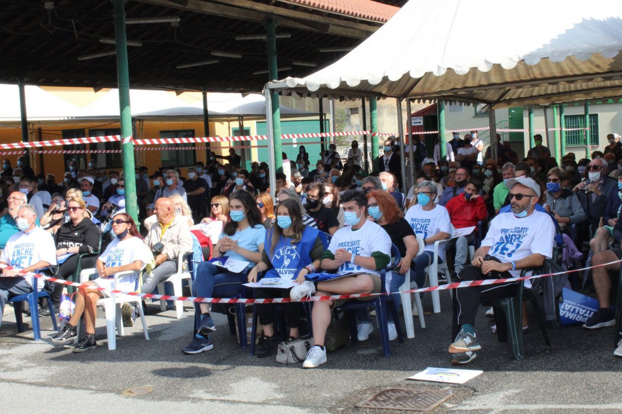 C’erano tanti esponenti della Lega mercoledì pomeriggio al Foro Boario per sostenere la candidatura di Tiziano Belotti, che si ripresenta alla guida di una coalizione di Centrodestra in cui, al Carroccio, si affiancano Forza Italia e Fratelli d’Italia. Ma a infiammare la folla è stato l’arrivo, (un po’ in ritardo sull’orario annunciato), di Matteo Salvini.