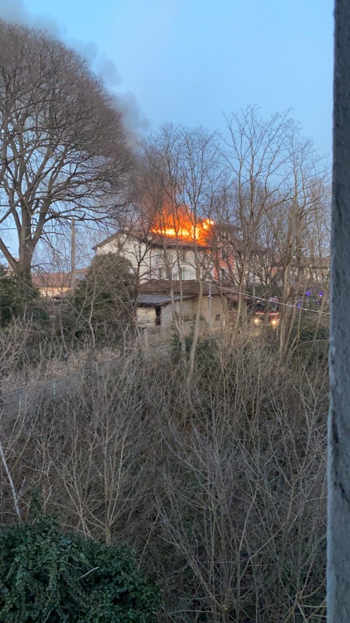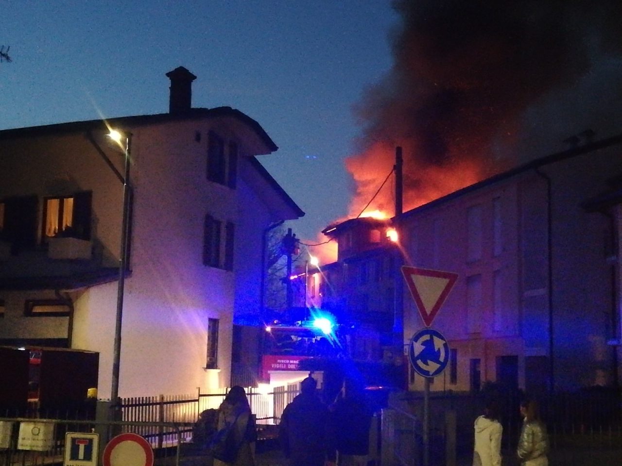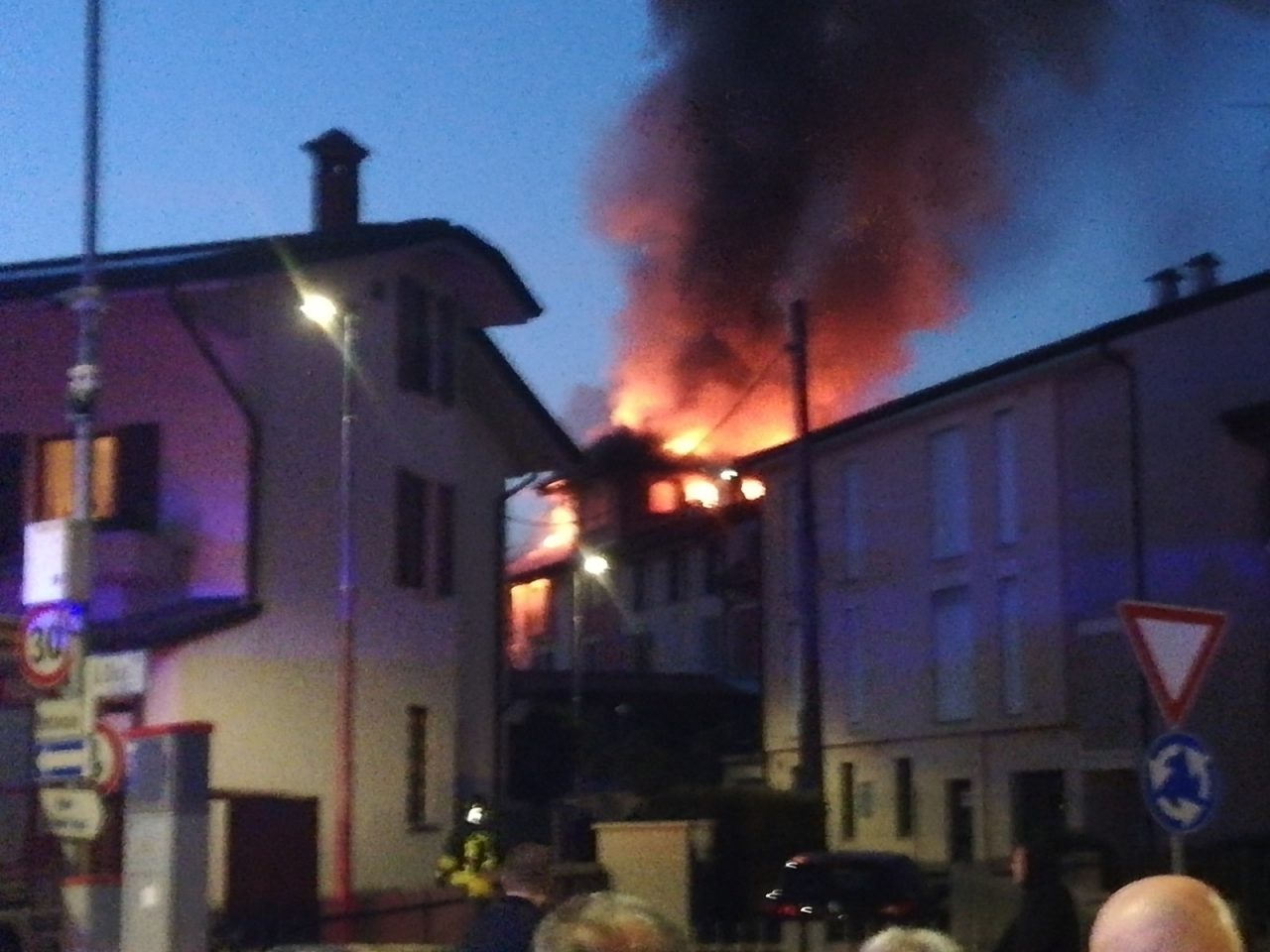 Maxi incendio in paese: tetto completamente divorato dalle fiamme. E’ successo a Pontoglio, intorno alle 18. In azione i Vigili del fuoco.