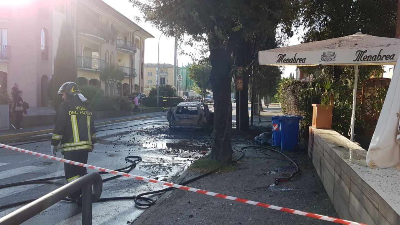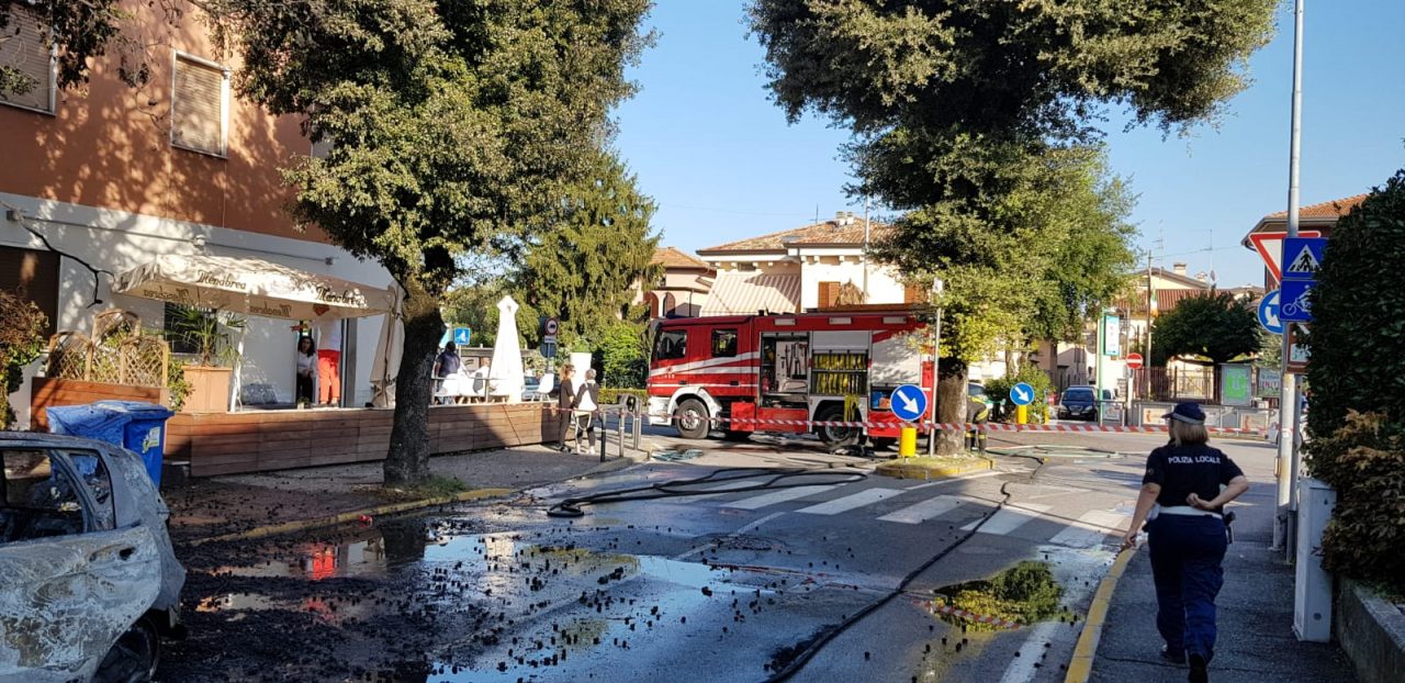 Il fatto è avvenuto in via Rimembranze a Desenzano. Un’auto, una mercedes classe A, ha preso fuoco ed è stata divorata dalla fiamme. La conducente, una giovane ragazza, stava viaggiando sul mezzo quando ha notato il fumo salire dal veicolo. Dopo aver capito cosa stava succedendo, allertata anche dagli automobilisti dietro di lei, ha prontamente fermato il mezzo e si è allontanata in fretta: fortunatamente non è rimasta coinvolta, ma la macchina si è incendiata ed è stata completamente avvolta dalle fiamme. Il fuoco si è poi propagato, divorando anche un grosso cipresso e il magazzino del bar adiacente, il Capolaterra.