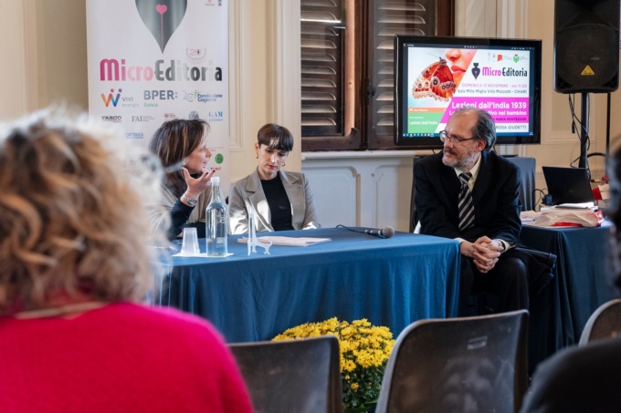 Una scia storica percorre la domenica della Microeditoria anche attraverso l’epopea dei Longobardi, insieme al Prof. Gabriele Archetti il suo “Longobardi in Italia. I Luoghi del Potere (568-774 d.c)” presentato nella sala Scuderie, in collaborazione con il Centro Studi Longobardi. La cultura che si fa storia e viceversa, è un’altra delle chiavi di lettura di questa e di tante altre “Microeditorie” così come la spinta propulsiva verso i temi educativi affrontati in collaborazione con l’Associazione Montessori e dalla sua presidente Rosa Giudetti che ha trascorso la domenica di salone in salone intervistando autori e presentando libri: “Gli Alberi già lo sanno” di Valeria Paola Babini oppure ancora Il peccato originale di Maria Montessori, a cura di Flavio De Giorgi, ordinario di Storia della pedagogia e dell’educazione presso l’Università degli Studi di Modena e Reggio Emilia: “Un testo di grande valore che contribuisce a smentire l’interpretazione secondo cui la dottrina cristiana del peccato originale sia in contraddizione con il metodo educativo della grande scienziata.” E sempre restando in tema di educazione, è venuto in soccorso Enrico Galiano con la sua “Scuola di felicità per eterni ripetenti” (Garzanti) ribadendo a chi era presente in sala che “arriva un momento in cui si è convinti che non ci sia più bisogno di imparare. Ma basta un attimo per capire che le nostre sicurezze, spesso, sono solo un modo per far tacere la paura”.