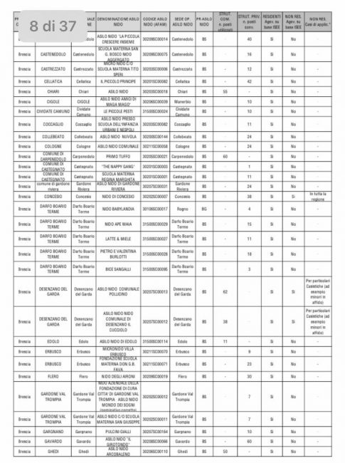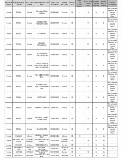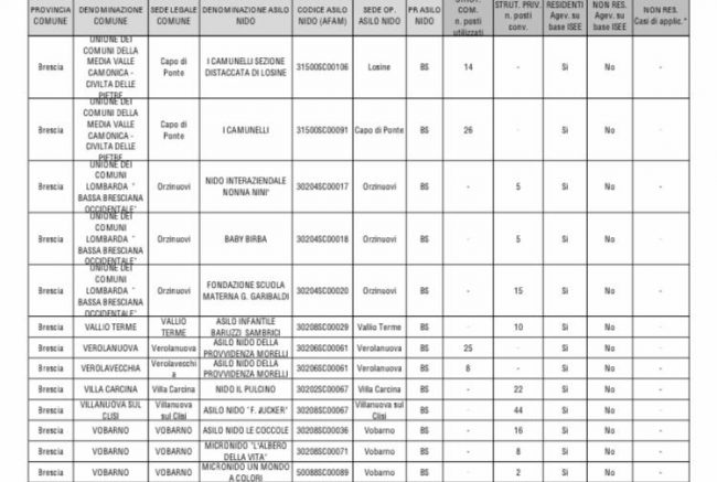 Nidi gratis: da oggi è possibile far domanda ECCO TUTTE LE STRUTTURE BRESCIANE