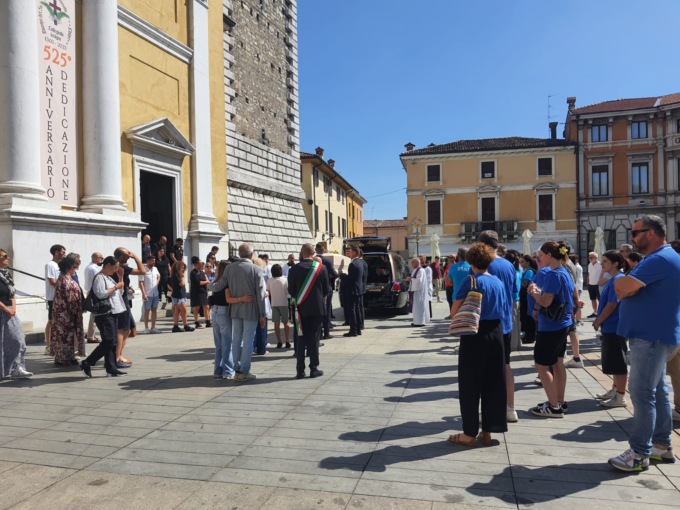 Il Duomo di Chiari era pieno, oggi pomeriggio, per le esequie celebrate dal prevosto della città Monsignor Gian Maria Fattorini. Stretti attorno alla bara di legno chiaro, sormontata da fiori arancioni, c’erano gli amici, i parenti, ma anche i colleghi della piscina, e i volontari della quadra Cortezzano di cui Matteo faceva parte. In fascia tricolore, i due sindaci di Chiari e di Castrezzato Gabriele Zotti e Luigi Cuneo.