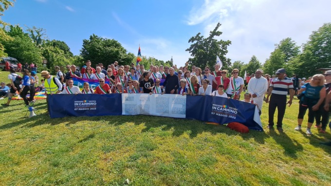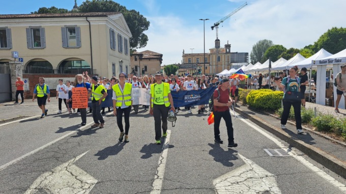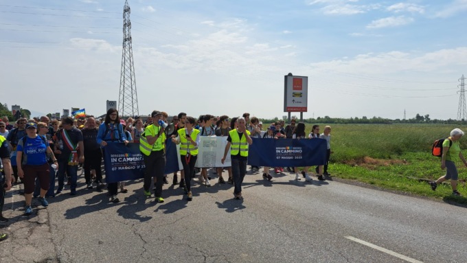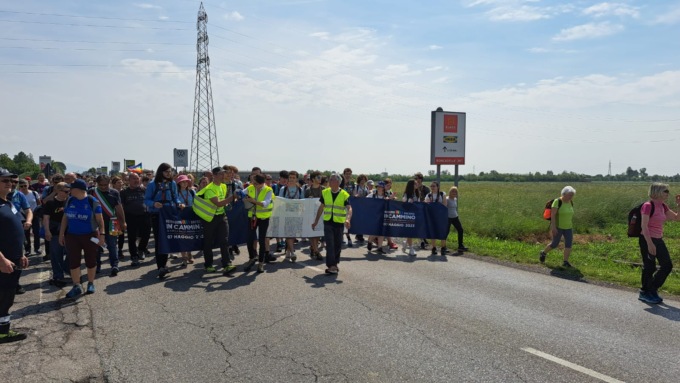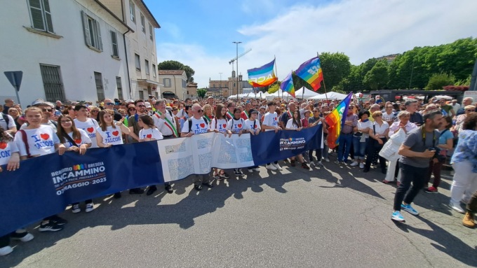 Ha preso il via questa mattina, domenica 7 maggio, la Marcia della Pace, l’evento organizzato nell’ambito di Bg Bs 2023 e frutto del lavoro del Coordinamento degli Enti Locali per la Pace delle due «sorelle della Cultura» (insieme alla Rete della Pace di Bergamo e alla Consulta della Pace di Brescia). Il corteo è partito da Brescia alle 9.15 dal Capolinea 3 Villaggio Badia e percorrerà 23 km, passando per la frazione della Mandolossa e i Comuni di Gussago, Roncadelle, Castegnato, Ospitaletto, Cazzago San Martino, Rovato, Coccaglio e Cologne. Alla marcia stanno partecipando oltre 5mila persone, ma ad ogni tappa si aggiungono nuovi camminatori che rendono il corteo sempre più folto e colorato. I camminatori in arrivo da Brescia poi faranno rotta per Palazzolo, al Ponte Sara Giusi, dove si uniranno con il corteo proveniente da Bergamo. La giornata proseguirà al parco Metelli con musica e ospiti d’eccezione.