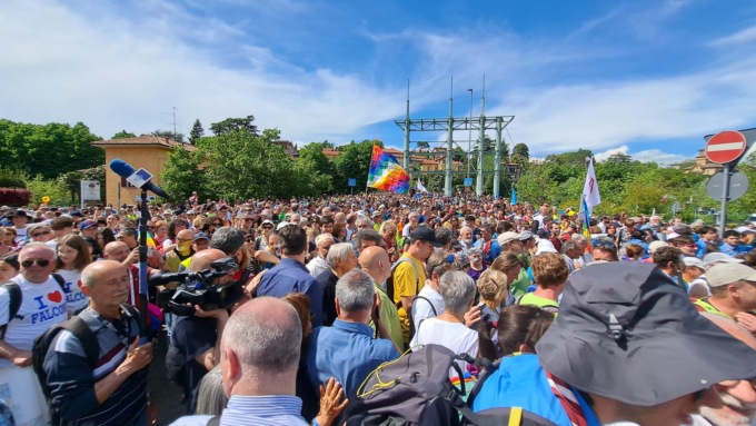 Oltre 12mila persone in marcia per la Pace. Nonostante le previsioni meteo avverse, in tantissimi si sono presentati alla partenza (in realtà bisognerebbe scrivere alle partenze, visto che erano due, una da Brescia e una da Bergamo): un impegno che è stato premiato anche dal cielo sereno e un bellissimo (e caldissimo) sole che ha accompagnato la camminata.
