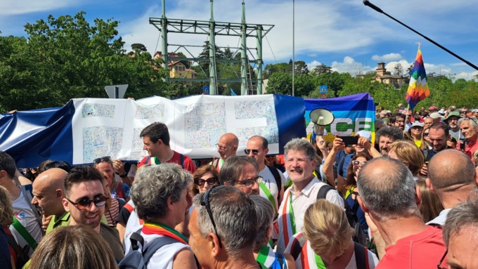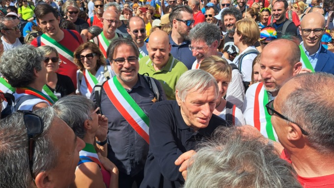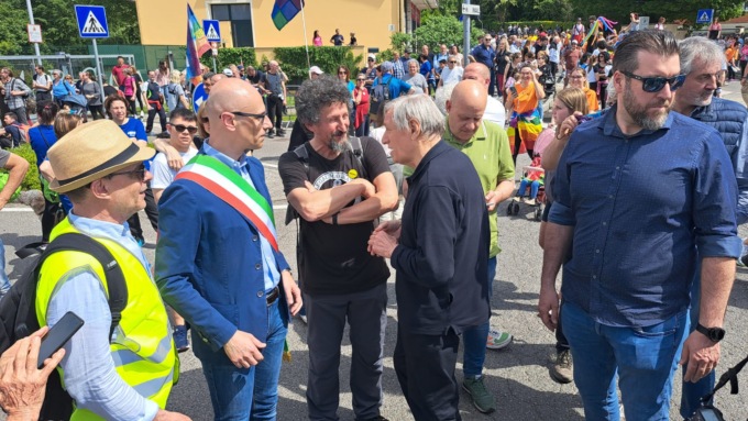 Intorno alle 15 i due cortei si sono uniti a Palazzolo sull’Oglio. All’imbocco del ponte Sara Giusi il vicesindaco di Brescia (facente funzioni) Laura Castelletti e il sindaco di Bergamo Giorgio Gori sono stati accolti dal sindaco di Palazzolo Gianmarco Cossandi. Dalle 15.30 (circa) alle 20 il parco Metelli ospiterà un grande momento di condivisione, musica e festa per tutti con ospiti d’eccezione quali don Luigi Ciotti e don Fabio Corazzina, da anni in prima linea per la non violenza e l’inclusività, Cecilia Strada, Martina Pignatti Morano e Flavio Lotti. Sul palco si esibiranno I Mercanti di Liquore e la band bresciana Le Endrigo.