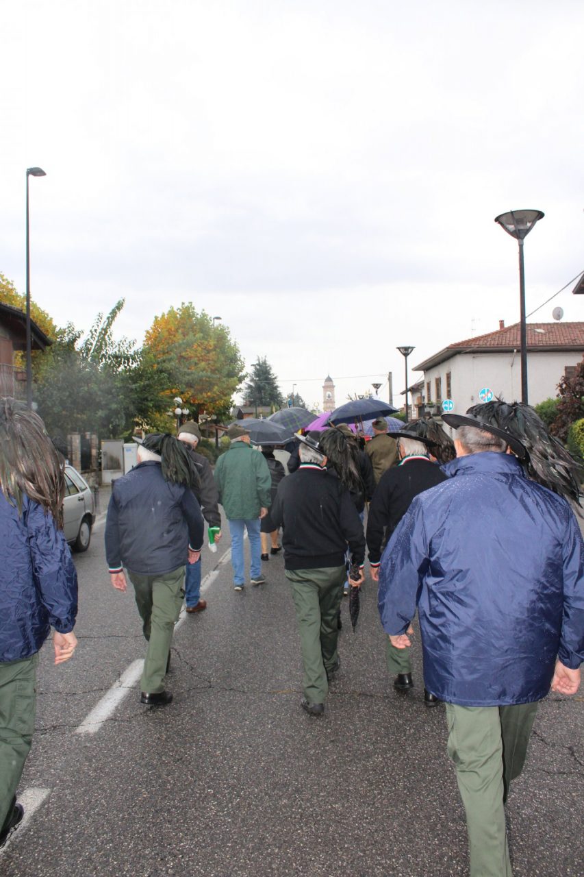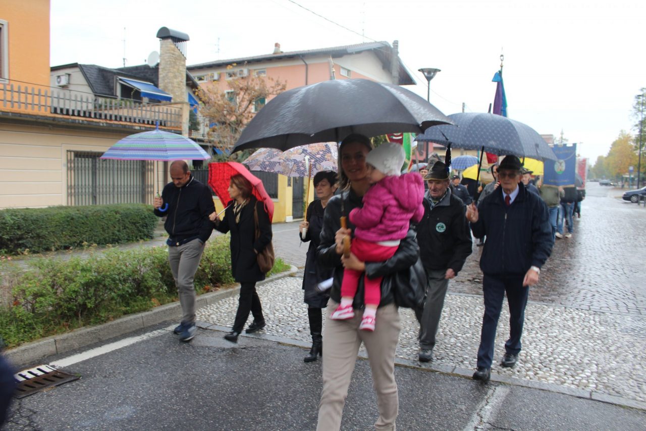 Il maltempo ha accompagnato il corteo colorato, con i cappelli degli alpini e dei bersaglieri, gli stendardi delle associazioni e delle diverse realtà solidali e amministrative del paese. La pioggia leggera nel piazzale del Comune è invece caduta copiosa e incessante durante l’inno e l’alzabandiera. Poi i presenti, il sindaco, la autorità, i consiglieri e gli assessori, assieme ai semplici cittadini hanno reso onore ai 238 soldati del paese che hanno tenuto alto l’onore sui diversi fronti di battaglia.