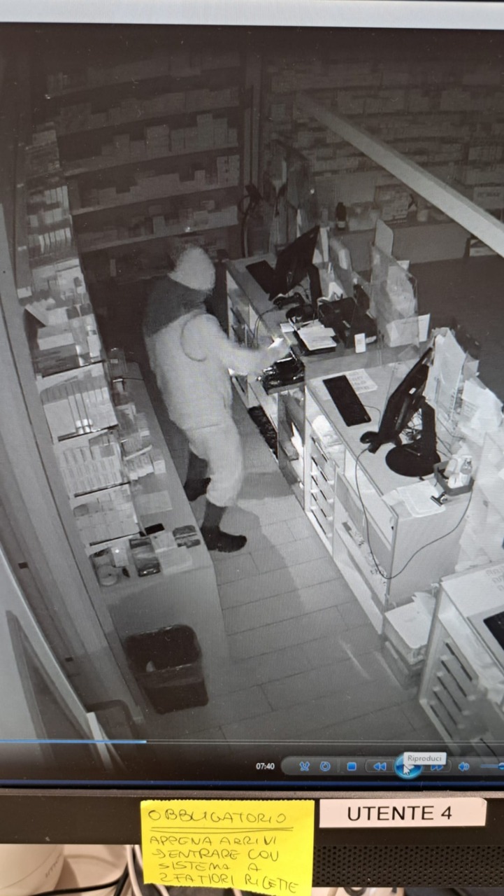 Le telecamere di video sorveglianza hanno ripreso i due ladri in azione, ma non è escluso che ci fosse un terzo complice ad attenderli poco lontano. Hanno colpito alle 3.30, con il volto travisato e i guanti sulle mani. Prima, con dei rami, hanno bloccati gli accessi al parcheggio del complesso, per ostacolare l’intervento delle Forze dell’ordine. Poi hanno forzato la porta d’ingresso secondaria, riservata ai fornitori, con un’accetta: mentre uno di loro faceva il palo sulla soglia, l’altro si è introdotto all’interno della farmacia.
