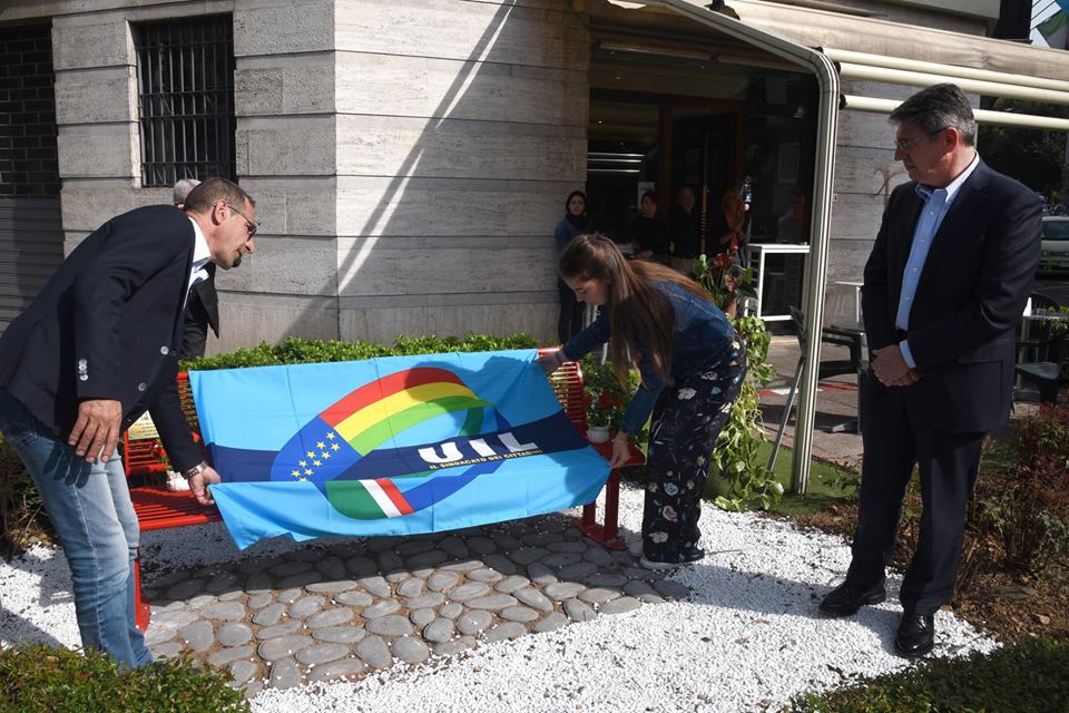 Una panchina rossa, simbolo della condanna contro i femminicidi. Manuela Bailo non si dimentica e di fronte alla sede Uil del capoluogo, in via Vantini, ieri (venerdì) è stato posizionato un monumento alla sua memoria.