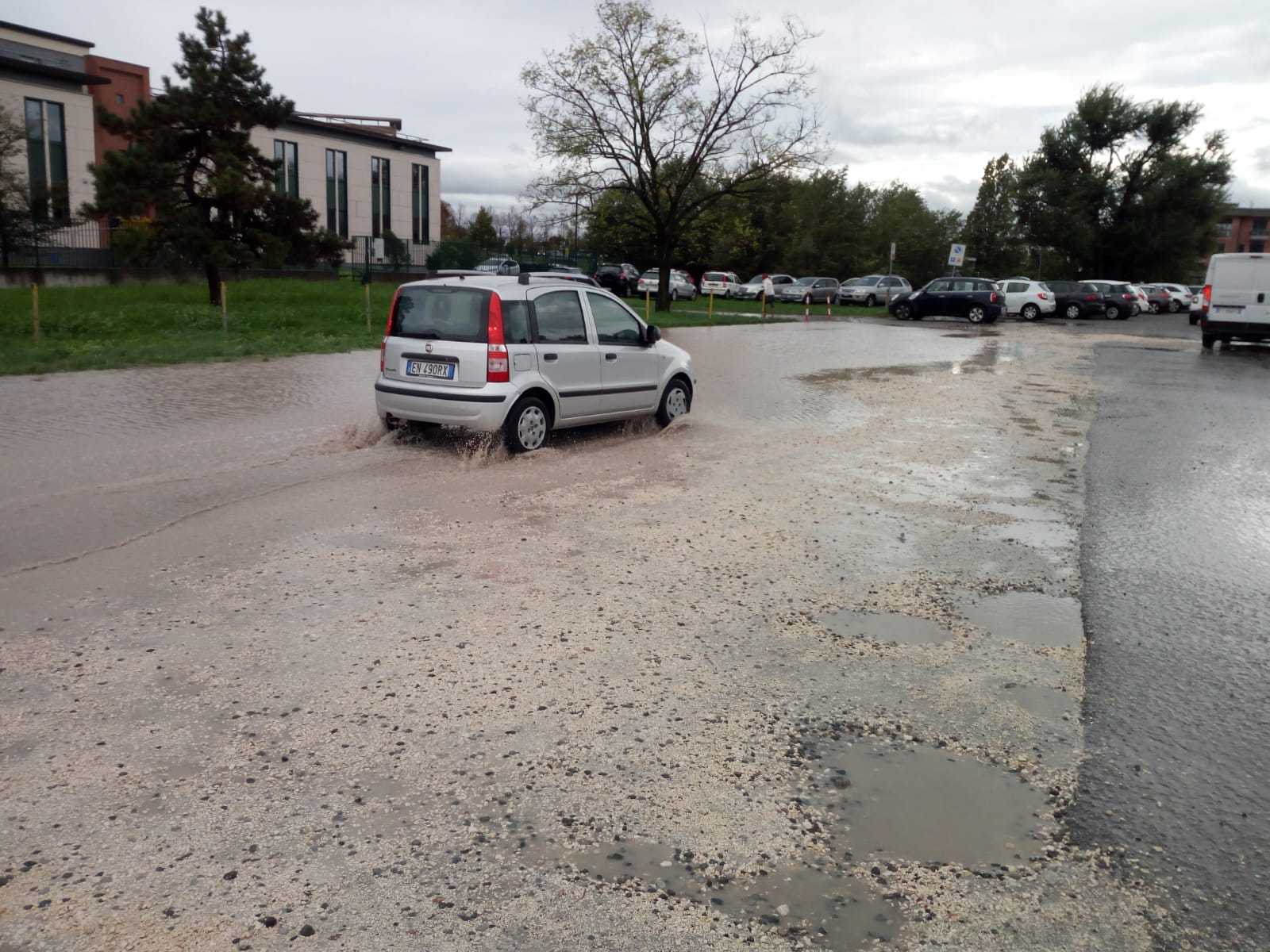 Bastano un paio di giorni di pioggia perchè il parcheggio prospicente all’ex ASL di Montichiari, oggi denominata ASST (Azienda Socio Sanitaria Territoriale), si trasformi in un’area inagibile, un vero e proprio lago con uno stato di degrado sempre più inaccettabile.