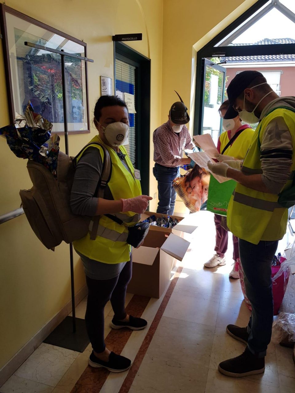 I volontari della protezione civile sono anche impegnato nella distribuzione di mascherine, medicinali, sacchi per la raccolta differenziata, spesa per gli ultra 65enni e distribuzione pasti insieme all’Associazione Pensionati.