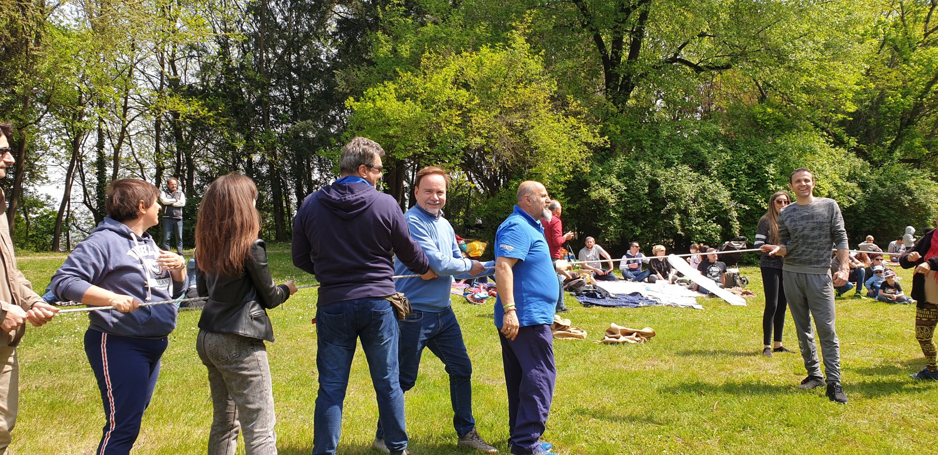 Tutti indifferentemente hanno potuto cimentarsi in molti giochi all’aria aperta come tiro alla fune, pentolaccia, bandierina fino al «fom birulà l’öf» cioè facciamo rotolare l’uovo che ha destato enorme entusiasmo fra i più piccoli. Merenda finale con pane e salame come nella migliore tradizione della Pasquetta italiana.