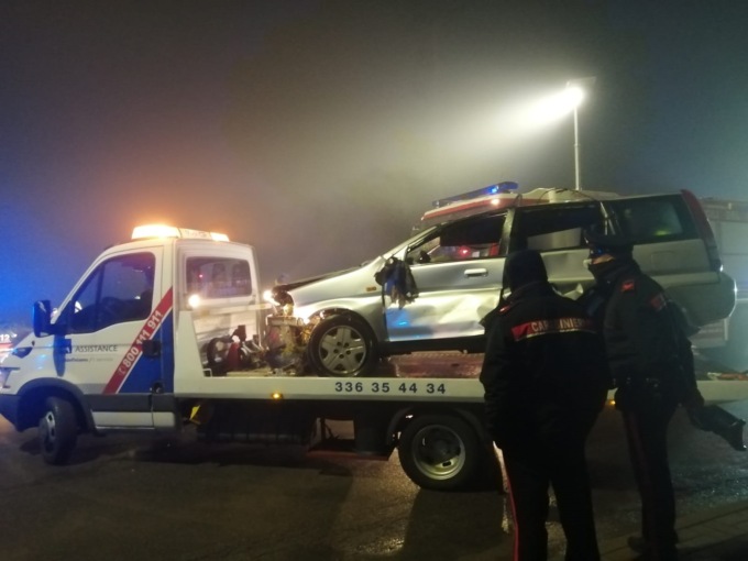 Lo schianto, probabilmente causato dalla nebbia, è avvenuto in via Francesca poco prima delle 20.