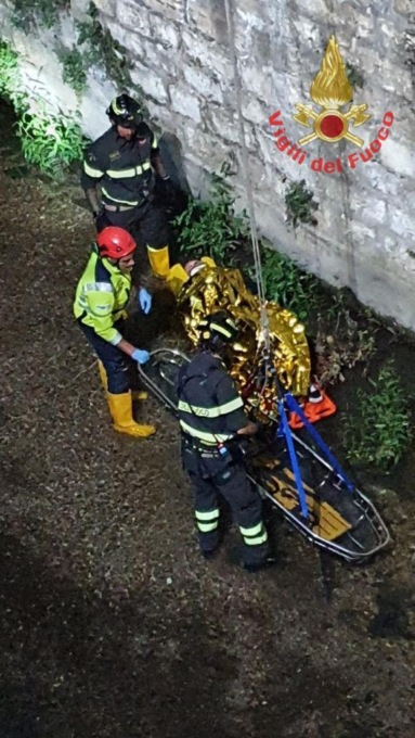 Con l’ausilio di un autoscala sono riusciti a metterlo in sicurezza su una barella e a recuperlo, affidandolo poi alle cure del 118. Il 37enne per fortuna non è in pericolo di vita e non ha riportato gravi ferite. E’ stato trasportato in ospedale in codice giallo.