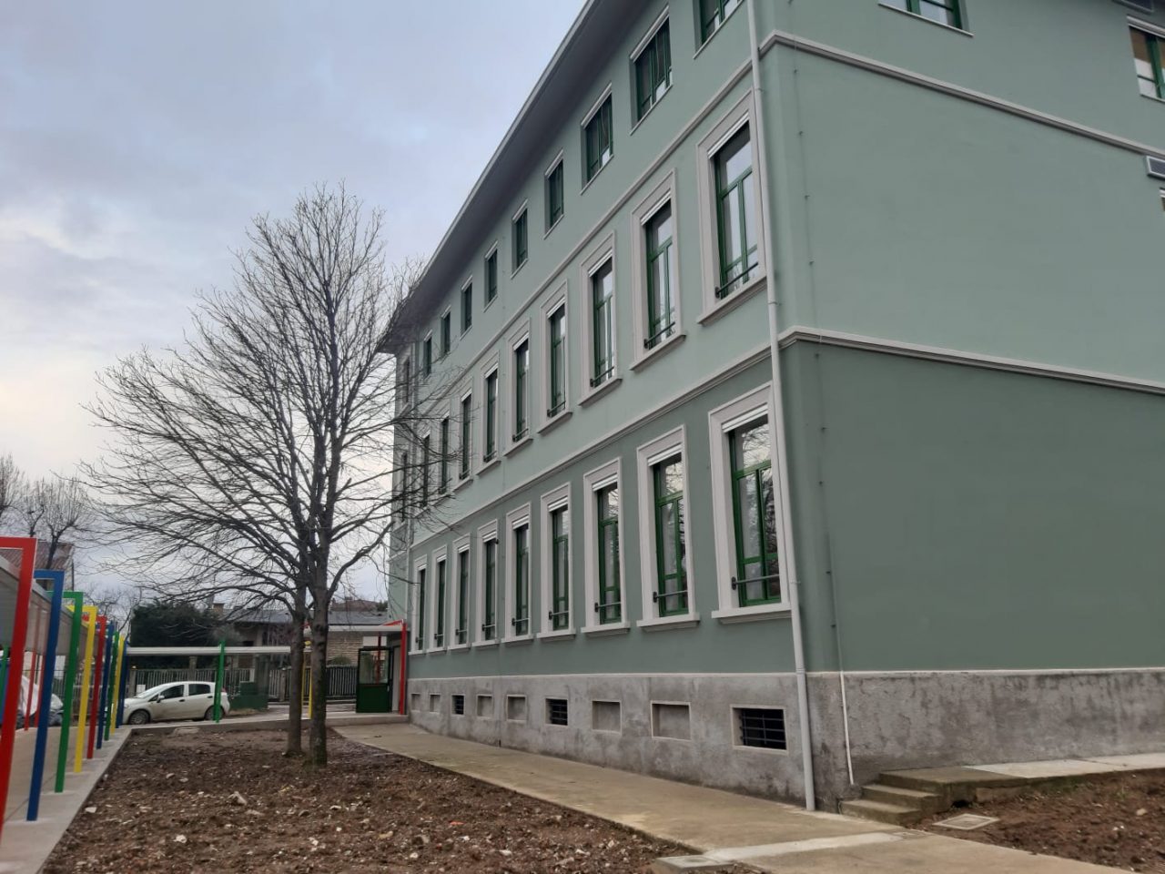 E’ stata raddoppiata la superficie della mensa, sono stati rifatti completamente i servizi igienici e le aule sono state rimodulate. E’ stato recuperato lo spazio che nel passato ospitava il museo (ex casa del custode) e rifatta la copertura, ottenendo un nuovo archivio e un ampio locale polivalente. Sono state rimosse le vecchie tapparelle, sostituite da sistemi oscuranti esterni elettrici. L’intero edificio è stato isolato termicamente e acusticamente ed è stato realizzato un nuovo passaggio esterno coperto di collegamento con la palestra. Oltre alla totale tinteggiatura esterna.